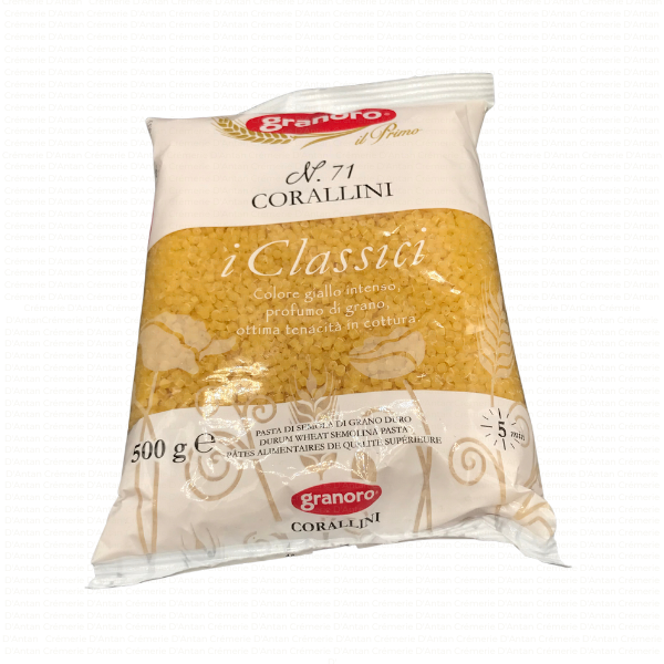 Les pâtes Granoro “gamme I Classici” ont la couleur jaune-or typique du blé dur doré au soleil qui est poreux, pour un excellent rendement et une digestibilité maximale. Il ne laisse aucun amidon dans l’eau de cuisson, qui reste claire et sans résidus. Il a une teneur élevée en protéines et le parfum incomparable du meilleur blé dur.